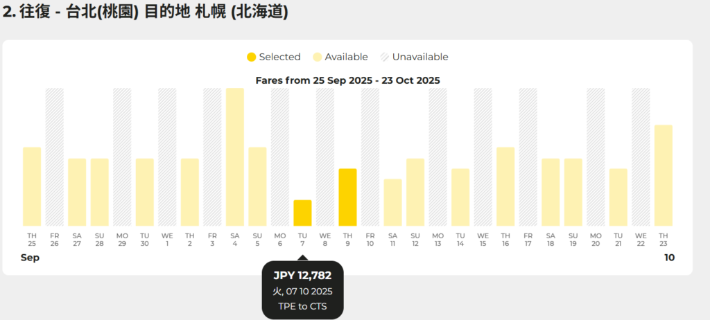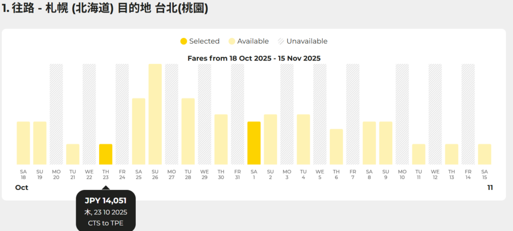 Scoot公式サイトのスクリーンショット 台北/桃園 ⇒ 札幌/新千歳