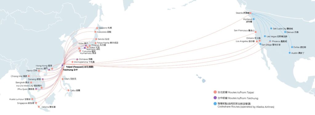 札幌/新千歳・函館・仙台・東京/成田・中部国際・大阪/関西・神戸・福岡・熊本・那覇・下地島⇒台北/桃園・台中・アメリカ各都市